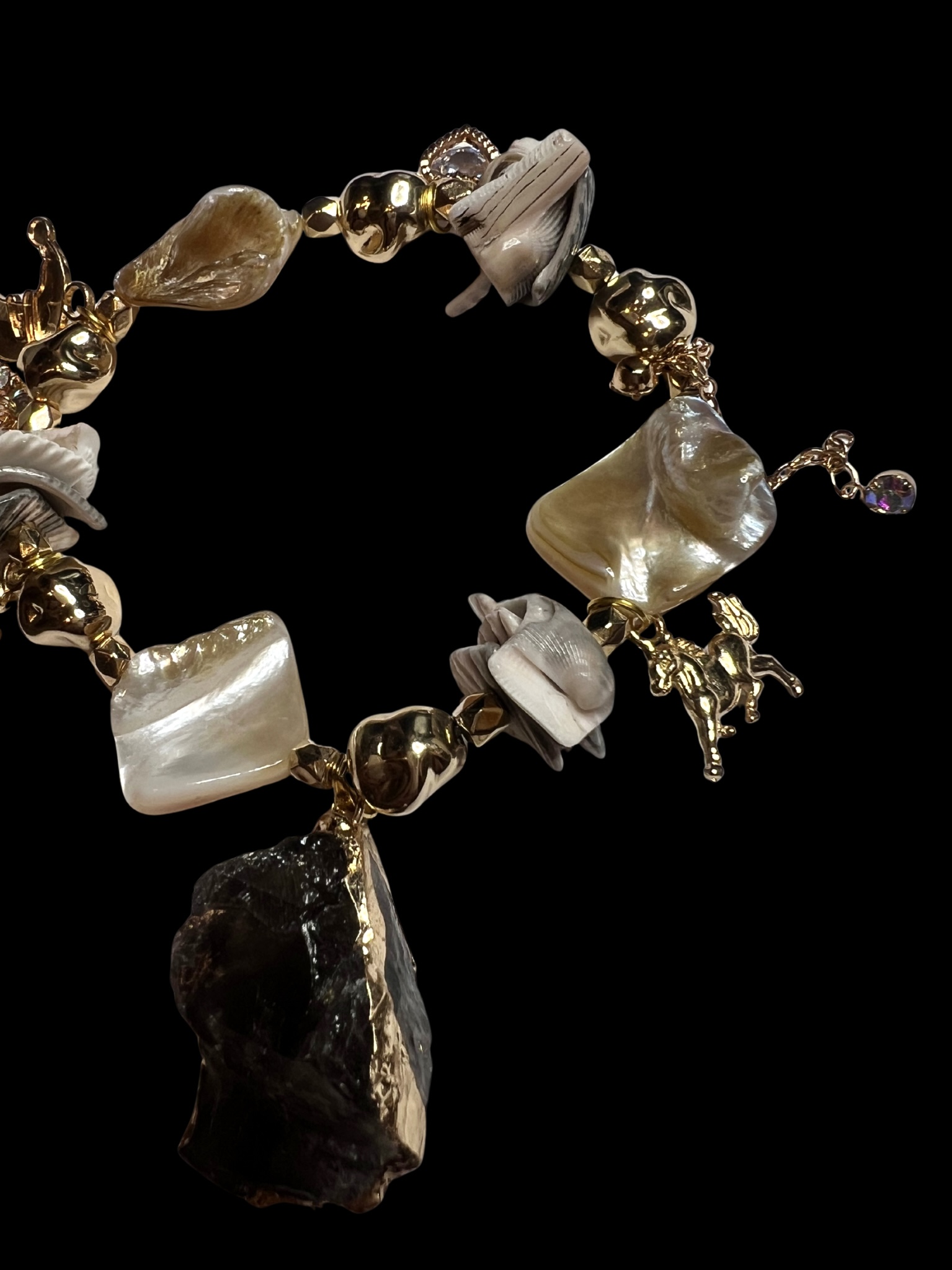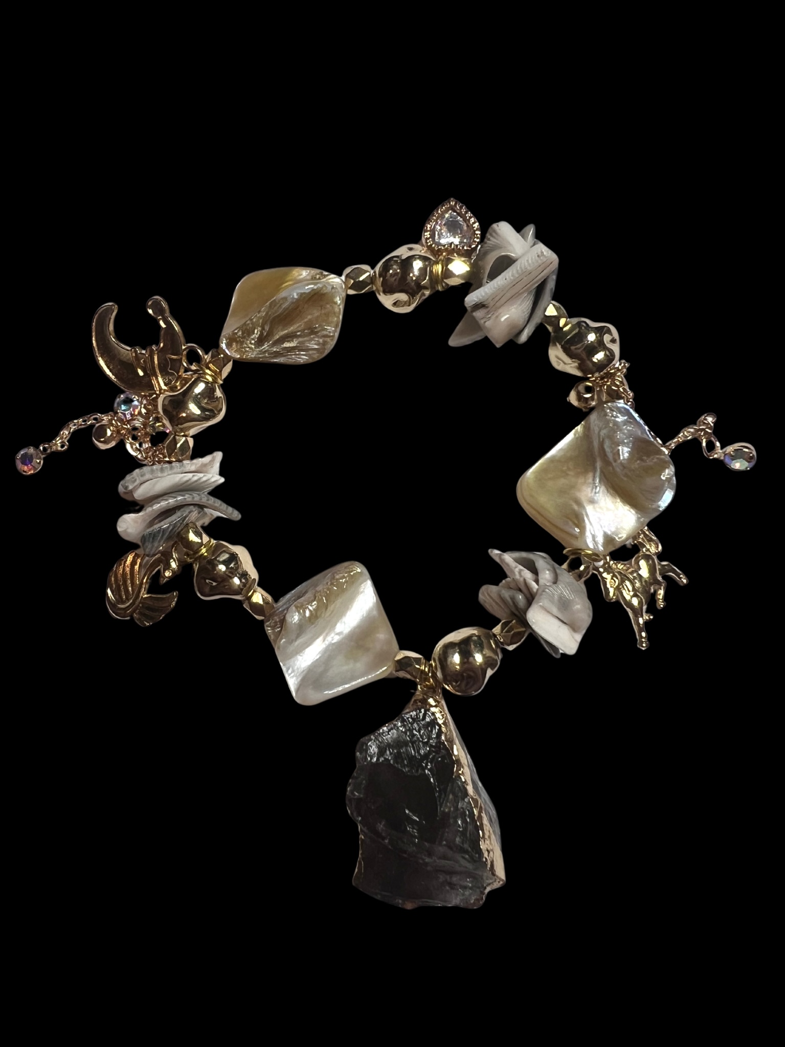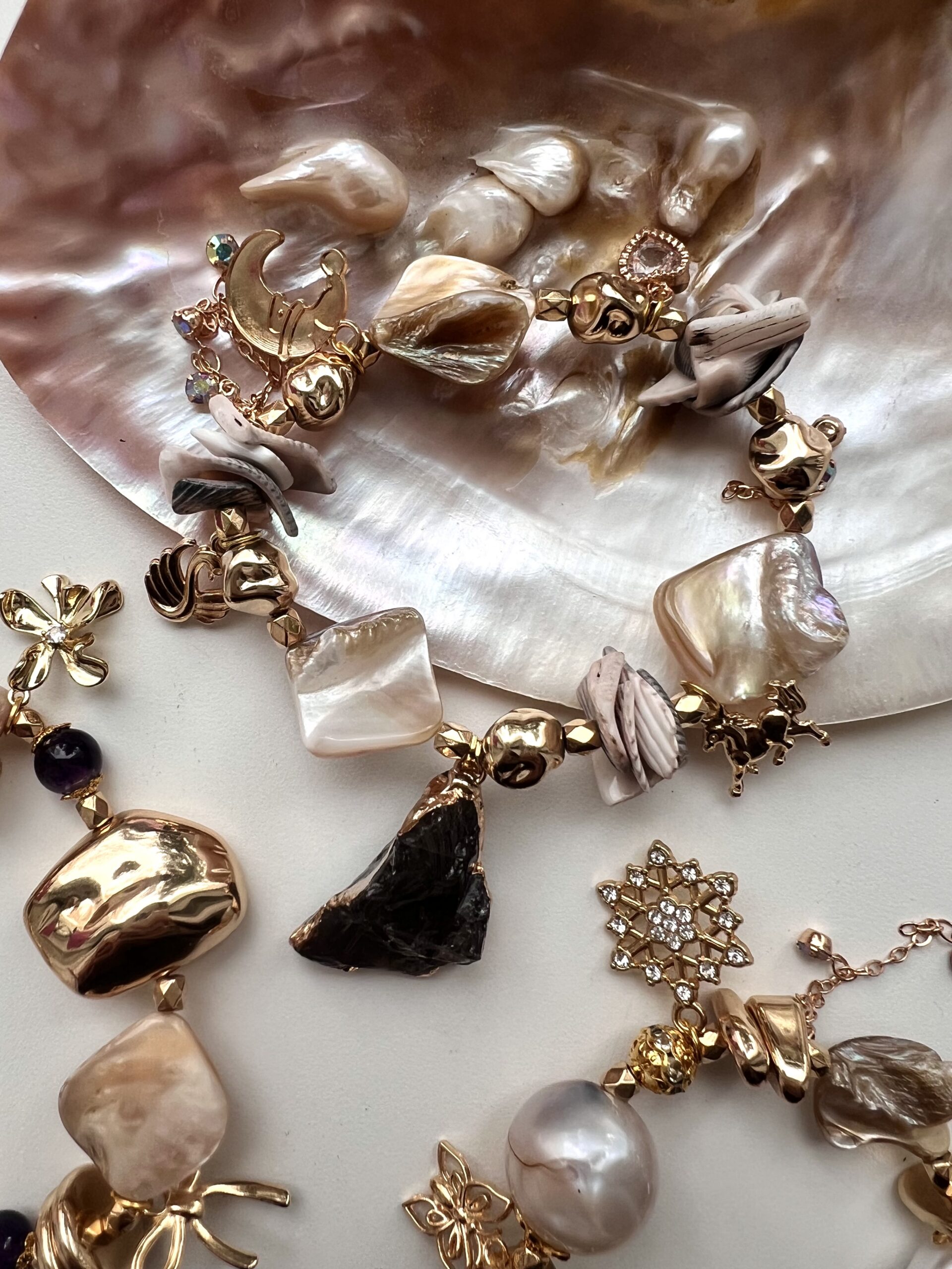 Enjoy the beauty of handmade design with this unique bracelet crafted from a mix of carefully chosen stones. Alongside high-quality artificial pearls, you’ll find natural pearls that are listed below.