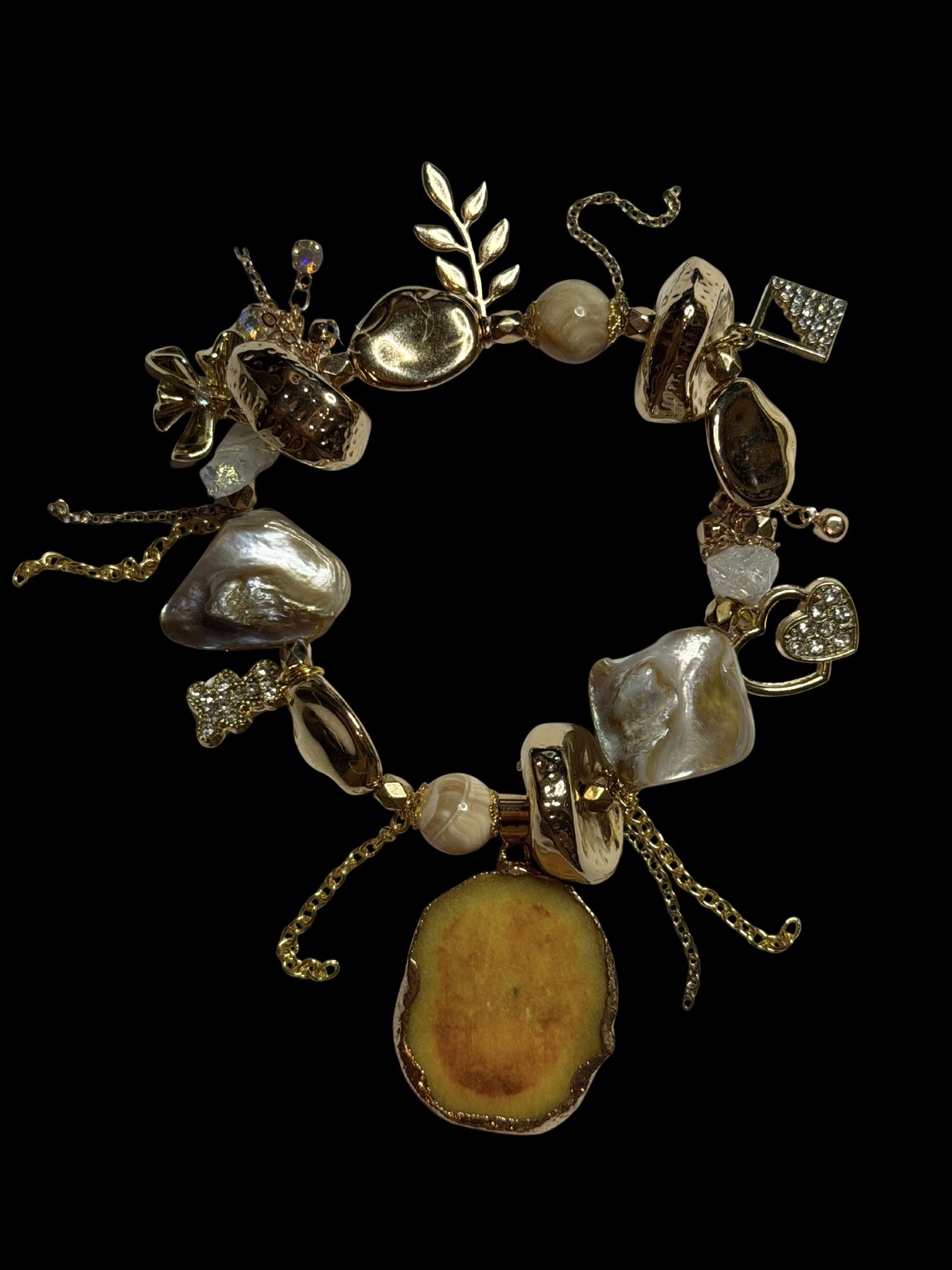 Enjoy the beauty of handmade design with this unique bracelet crafted from a mix of carefully chosen stones. Alongside high-quality artificial pearls, you’ll find natural pearls that are listed below.