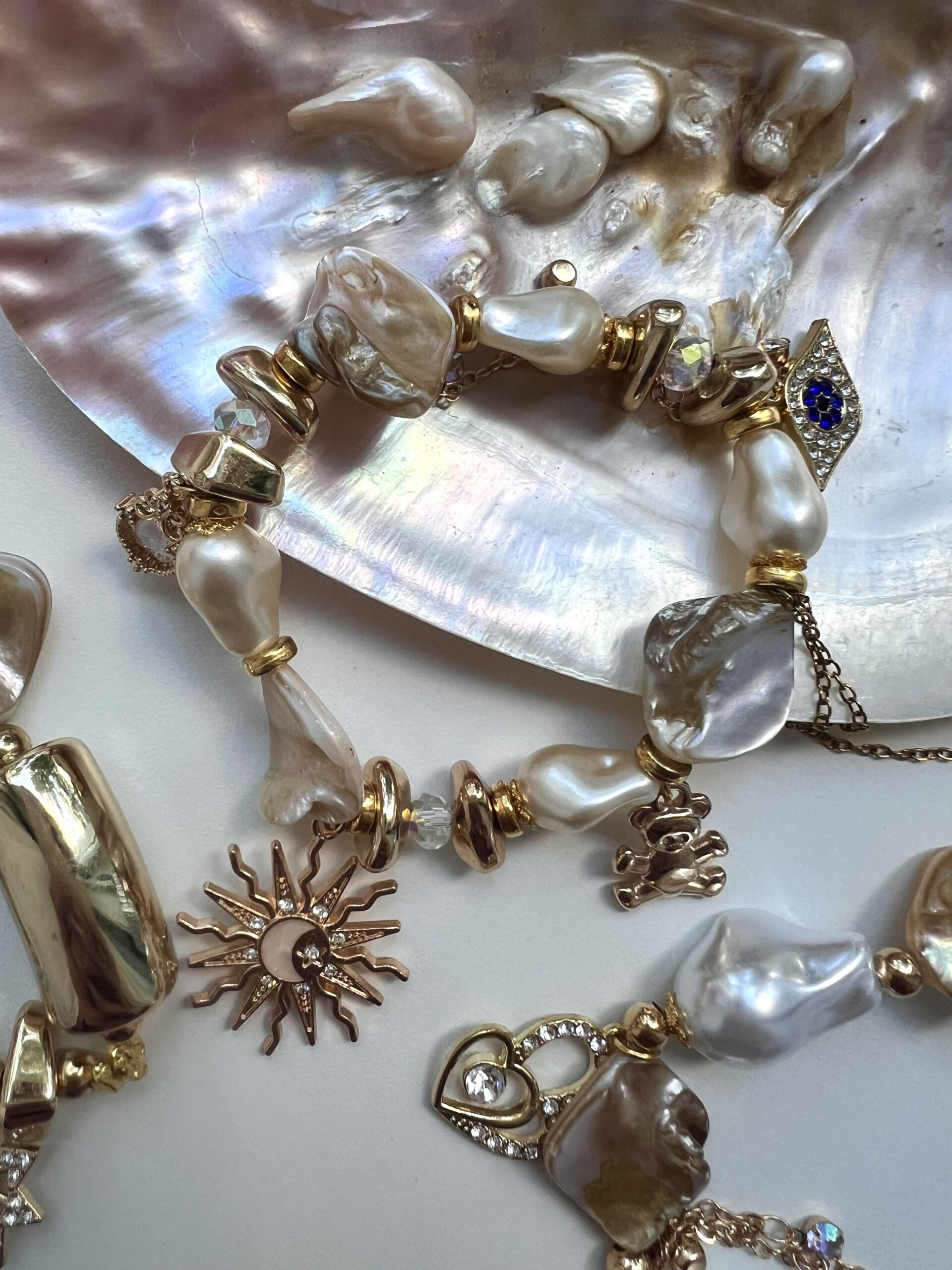 Enjoy the beauty of handmade design with this unique bracelet crafted from a mix of carefully chosen stones. Alongside high-quality artificial pearls, you’ll find natural pearls that are listed below.